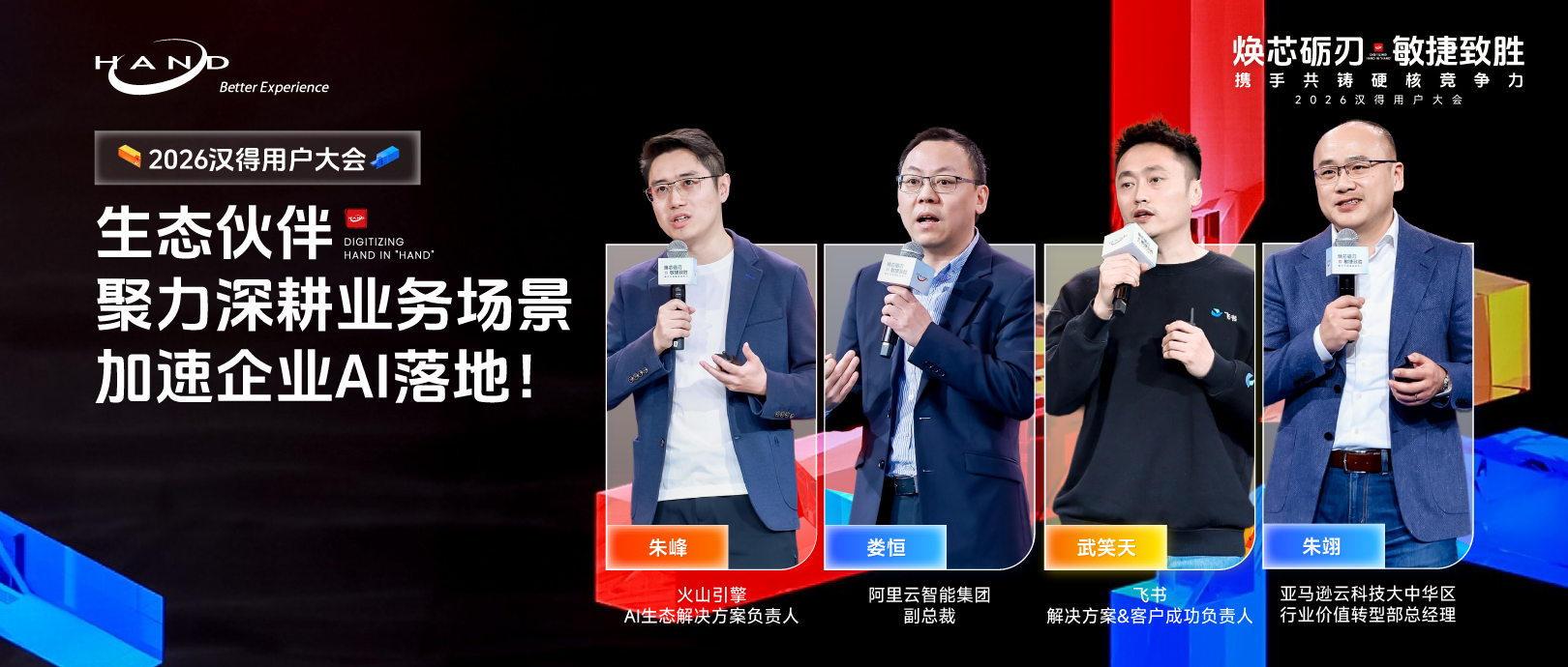 5月29日-30日,2024亚马逊云科技中国峰会在上海顺利举办。本次峰会上,亚马逊云科技宣布推出“亚马逊云科技行业合作伙伴计划”,汉得作为亚马逊云科技的重要合作伙伴,同时也是本次活动的银牌赞助商受邀参会。汉得高级副总裁何登攀先生作为代表上台参与行业合作伙伴计划启动仪式。