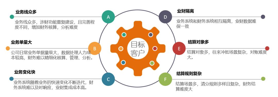 业务线众多,涉财功能重复建设,且完善程度不同,增加财务核算分析难度。