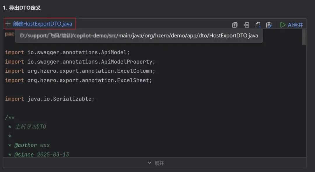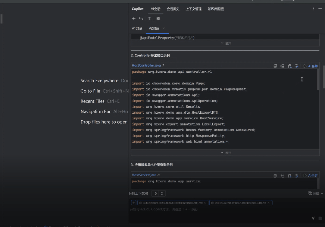 汉得企业级智能编码助手(中文名“飞码”,英文名“H-AI Coder”,以下简称“飞码”),结合AI智能驱动与H-ZERO专属规则驱动,支持智能代码补全、代码对话问答、智能代码诊断、知识问答、高质量H-ZERO相关脚手架代码生成等场景,同时支持企业级权限管控及可视化分析,旨在提供更加规范、高效的开发体验,提升用户开发效率与代码质量。 本次版本主要围绕编码更流畅、对话更高效、知识更精准三大方向持续打磨,全面提升交互体验、稳定性与实用性: 智能代码补全升级:支持单次补全结果全量缓存,连续确认更流畅,补全质量更稳定 智能对话体验优化:代码展示更清晰,支持一键创建文件、插入/替换代码、快速跳转与Diff对比等;同时,新增「AI合并」,AI建议代码可一键智能合并至本地文件,操作更高效 @KMS-Docs 能力增强:支持手动筛选知识库文档作为上下文,让问答更聚焦、更精准 插件更新自动推送:新版本发布后将第一时间推送更新,无需手动检查,即可及时获取最新功能与优化体验,确保您始终保持最佳版本 体验与稳定性全面优化:持续完善性能表现,修复已知问题,让整体使用体验更加稳定、可靠 一、智能代码补全升级 补全更流畅 飞码V1.2.6对代码补全能力进行了全面深度优化,引入单次补全结果全量缓存机制。在连续多次确认补全的场景下,系统无需重复计算,即可快速响应,显著降低等待与卡顿感,整体补全体验更流畅、结果更稳定,让编码过程更加专注、高效。 二、智能对话体验优化 操作更高效 飞码V1.2.6对智能对话界面进行了系统性升级,围绕代码可读性与操作高效性持续优化。新版对话框中,代码展示结构更加清晰,关键内容一目了然;同时支持一键创建文件、插入或替换代码、快速跳转至目标位置及Diff对比等高频操作,将“看代码、改代码、用代码”整合为一个连续闭环,显著降低上下文切换成本,让对话式编程真正服务于开发过程。 1. 优化代码展示体验 全面优化对话结果中的代码块展示结构,可读性更强、交互体验更好,显著提升代码浏览与编辑体验。 2. 一键创建本地文件 支持在对话结果中将代码块直接保存为本地文件,快速完成代码落地与工程接入,提供如下两种创建方式: 方式一:AI 规划路径,自动识别并按AI规划的目录结构一键生成文件。 方式二:手工指定路径,支持自定义保存路径及文件名,满足各种自定义场景需求。 3. 智能插入与替换 支持“插入到光标处”与“替换选中代码”两种插入模式,系统可根据当前编辑状态自动匹配最合适的写入方式,减少误操作,使用更顺畅。 4. 支持快速跳转与Diff对比 支持代码块与本地代码文件的快速跳转,降低手动查找与定位成本。 新增一键快速Diff功能,方便对比AI建议的代码与本地文件的差异,辅助高效决策。 5. 新增「AI合并」能力 新增「AI 合并」能力,可一键将AI建议的代码智能合并至本地文件,自动处理结构适配与潜在冲突,让代码修改从“对比—复制—粘贴”升级为一次完成,显著提升合并效率及质量。 三、@KMS-Docs能力增强 知识更精准 在原有自动知识融合能力的基础上,飞码V1.2.6 进一步增强@KMS-Docs的灵活性与可控性。用户可根据实际需求,手动检索、筛选并指定知识库中的特定文档作为问答上下文,让AI聚焦于真正相关的信息来源,避免无关干扰,使知识引用更精准,更贴合真实业务场景。 在@KMS-Docs上下文中,选择「手动检索知识库文档」。 然后在左侧先确定目标知识库范围,再根据文档名称关键字检索所需文档。 最后勾选并确认目标文档后,即可将所选文档批量添加至当前问答上下文。 四、插件更新自动推送 升级更及时 飞码V1.2.6引入插件更新自动推送机制。新版本发布后将第一时间推送更新,无需手动检查,即可及时获取飞码最新功能与优化体验,确保您始终保持最佳版本,让升级过程更省心、更轻松。 结语 以上内容主要从四大方面介绍了飞码V1.2.6的新特性。更多功能细节可参阅开放平台文档,或随时联系研发团队。未来我们将持续迭代,为您带来更多智能编程体验,期待与您交流! 💬 欢迎在评论区留言,一起探讨智能编程在您业务中的应用潜力~ 1. 如果您想了解飞码更详细的功能介绍和产品信息,欢迎查阅我们的产品文档 请在PC端打开 ➡️ 汉得焱牛开放平台 【文档>技术产品>汉得H-AI飞码智能编码助手】 2. 相关产品咨询或了解更多信息,欢迎联系我们 邮箱 ➡️ openhand@vip.hand-china.com 3. 试用飞码期间,若您有任何问题需要咨询,都可前往焱牛开放平台(open.hand-china.com)提反馈,或将疑问发往联系邮箱。我们有专业人员针对您的问题进行解决回复,技术精良的研发团队根据您的反馈进行应用优化。期待您的反馈,我们将用心对待每一份回应~ 携手汉得,共铸硬核竞争力!