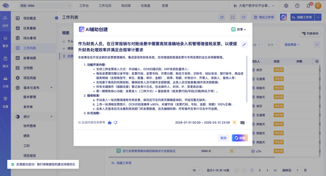项目研发管理中,最珍贵的资源永远是“人”的精力与创造力。然而,有多少团队的聪明才智,被消耗在填表、拆任务、写用例这些重复的“体力活”上? 猪齿鱼3.0的回答是 让AI接管繁琐,让人专注创造 汉得大客户数字化平台事业部旗下的猪齿鱼数智化研发管理平台,正式迎来3.0版本!本次更新以AI深度赋能为核心,全面重构研发协作体验,助力企业高效管理项目全流程。 项目协作AI智能升级 效率飞跃连击 一句话,需求/工作项快速诞生 ✨ 一句话生成任务:输入需求描述,AI自动生成完整工作项,告别手动录入繁琐 场景 💢 还在一边回忆需求细节,一边机械地填写任务标题、描述、指派人、截止日期……吗?这种“表单填空题”堪称灵感杀手。 猪齿鱼3.0的「AI辅助创建」功能,让你只需像和同事沟通一样,自然地说出:“我们需要在登录页增加一个微信扫码登录功能,下周五前要上线,让前端小明负责。” 下一秒,一个标题清晰、描述详尽、负责人和截止日均已设定的工作项,便已诞生在你的项目看板中。从“手动录入”到“口语化创建”,效率与体验,一步跨越。 ✅ 猪齿鱼3.0的辅助创建工作项功能,用户只需用简洁的语言描述自己的需求,系统就能瞬间理解并生成相应的工作项/需求。 一键拆解,任务规划更轻松 ✨ 智能任务分解:将复杂需求或主任务自动拆解为可执行的子任务,提升任务规划效率 场景 💢 面对复杂需求,如何拆解得既周全又高效?传统的人工分解,高度依赖个人经验,耗时费力不说,还难免挂一漏万,为项目埋下隐患。 猪齿鱼3.0的「智能任务拆解」功能,如同为项目管理者配备了一位永不疲倦的“规划大脑”。AI通过对核心任务或需求描述的分析,便能基于对上下文和目标的深度理解,将其自动、层级化地分解为一系列可执行、责任明确的子任务。 这不仅解放管理者的时间,更确保任务拆解的结构性和逻辑严谨性,让项目规划从一门“经验艺术”转变为一门“精准科学”,从源头提升项目执行的成功率。 ✅ 猪齿鱼 3.0 运用先进的算法和智能模型,对主任务或需求进行深入分析,然后将其智能拆解为一系列详细的子任务项。 用例设计,AI一键生成 ✨ 测试用例智能拆解:基于任务/需求背景智能拆解并生成结构化测试用例X-Mind脑图,彻底告别手动维护,让测试更专业、更全面 场景 💢 在软件研发中,测试用例的设计与维护是保障产品质量的生命线,却也是工程师们耗时最久的“体力活”之一。手动编写和维护,工作量大、标准不一,且难以跟上需求的快速变化。 猪齿鱼3.0的「AI生成测试用例」功能,正是为此而生,标志着测试设计迈入智能化新阶段。它不再需要测试人员从零开始“憋”用例,而是能直接基于任务或需求的背景描述,智能推理出测试场景,并一键生成结构清晰、覆盖核心路径的X-Mind测试脑图。 从测试目录、用例描述,到前置条件、操作步骤、预期结果,AI为你搭建出专业、完整的测试框架。测试工程师可以将宝贵精力从重复的“搬运工”角色中释放出来,转而聚焦于更深度的探索性测试、边界测试和用户体验优化,极大提升测试工作的价值与成就感。 ✅ 猪齿鱼3.0基于主任务背景,通过AI智能解析并自动生成结构化的X-Mind测试脑图,为需求/任务明确可执行、覆盖完整的测试用例。 AI测试执行官: 不知疲倦的“智能质检员” ✨ AI智能自动化测试:AI可以不知疲倦地运行测试,极大扩展测试窗口,提升测试覆盖率,同时避免人为疏忽导致的误判。将测试工程师从大量重复、机械的“点击-验证”劳动中解放出来。任何代码提交后,AI都能快速完成一轮精准的回归测试,让质量防线从“人工抽查”变为“自动全检” 场景 💢 智能生成了用例,谁来执行?传统的自动化测试,需要工程师编写和维护大量的脚本,面对频繁变更的需求,往往力不从心。 猪齿鱼3.0的「AI自动化测试执行」功能,让测试本身实现了“自动驾驶”。您只需将已生成的测试用例交给AI,它便能化身不知疲倦的“智能质检员”,自主完成全流程测试验证。 它的工作流程清晰而高效: ◈读取指令:AI精准理解测试用例中的每一步操作、每一个预期结果 ◈执行验证:AI自动访问“测试环境”,像真实用户一样操作界面、调用接口,并实时抓取系统反馈 ◈智能判定:将实际结果与用例的“预期结果”进行比对,自动判断测试“通过”或“不通过” ◈精准报告:若测试通过,自动生成可追溯的测试报告;若发现不符,AI将立即标记异常、定位问题步骤,并附上详实的“证据截图与日志”,直接指引人工进行高效复核 ✅ 猪齿鱼3.0通过AI实现无人值守的自动化测试验证,并对异常进行精准定位与反馈,将测试人力从重复执行中彻底解放。(全新内测功能,欢迎探索) << 滑动查看下一张图片 >> 进展与风险,自动浮现 ✨ 动态智能归纳:基于工作项评论与操作记录,自动生成进展总结与风险分析,辅助决策更精准 场景 💢 项目信息散落在无数评论和更新里,手动整理进展、编写报告是不是你的痛?信息滞后,风险隐形。 猪齿鱼3.0的「动态智能归纳」功能,就是你的24小时项目分析助手。它实时“观察”每一个工作项,自动分析评论焦点、追踪状态变更、归纳阻塞原因。 无需你费力搜集,项目当前的整体进度、潜在风险、协作热点,便以精炼的语言自动总结呈现。 让每个决策,都建立在全局、客观、实时的信息基石之上。 ✅ 