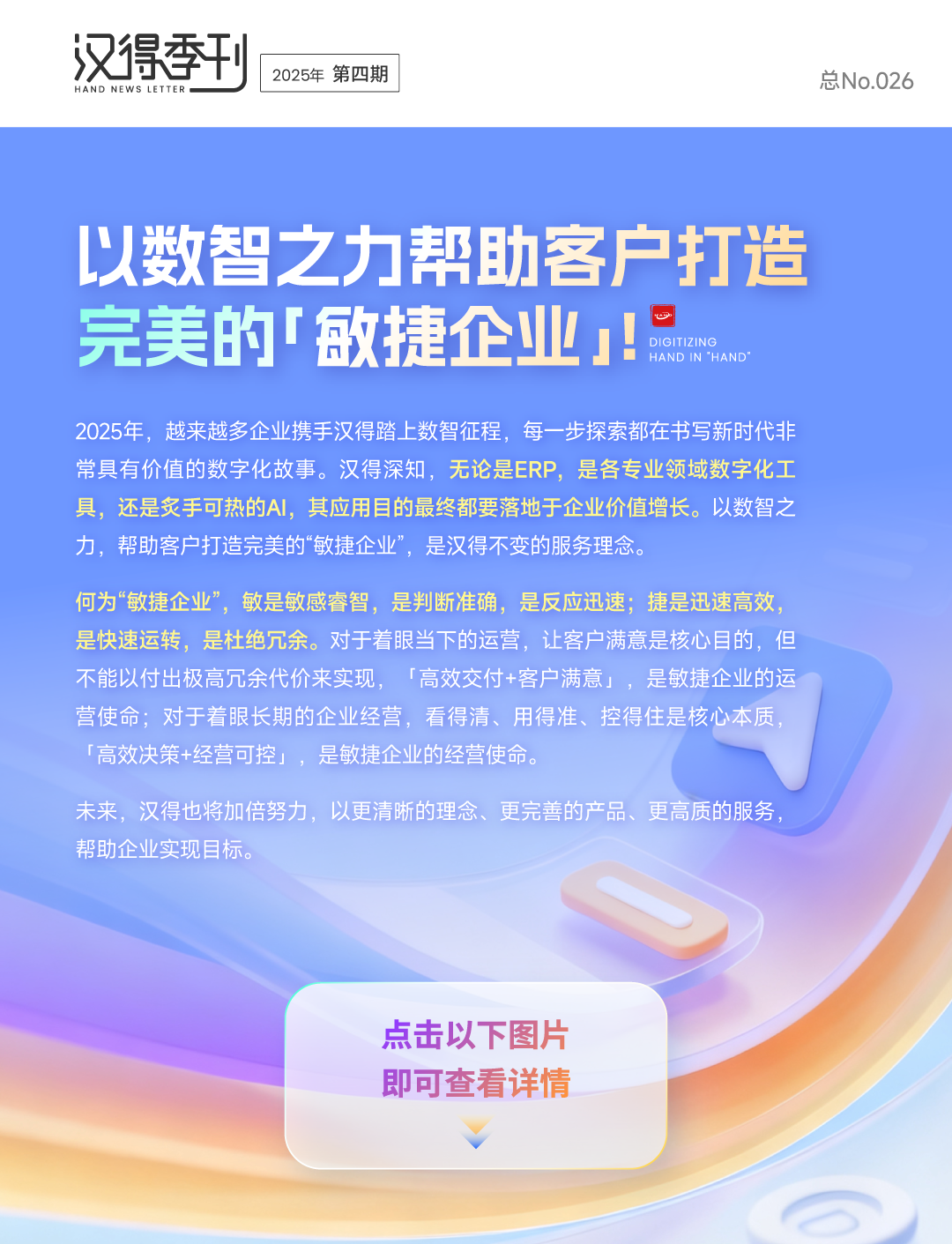 #01H-ZERO·平台筑基点击图片,查看详情H-ZERO支撑三一重工自主研发100+数字化应用,覆盖研、产、供、销、服多个业务环节H-ZERO助力云南建投物流不到1年时间构建起集整个供应链生态为一体的数字化业务平台助力盛虹控股、联合电子、青岛啤酒等头部企业构建敏捷、可视、协同的研发体系汉得有信心帮助中国各领域优秀的制造企业,快速建设灯塔工厂操作系统#02AI实践·全域赋能点击图片,查看详情聚焦中亿丰核心业务链条,重点推进回款分析、运营管理和风险预警三大核心场景以创新技术为引擎,帮助联合汽车电子打造覆盖采购关键环节的AI智能解决方案标志着与世纪阳光在AI转型领域的深度合作正式启动,也吹响了全员智能化转型号角携手双环传动举办AI应用共创Workshop,双方在企业AI转型战略合作迈入全新阶段协助歌尔股份完成项目中心、供方中心、价格中心和订单交付协同、品质技术协同切换上线携手众多行业领先企业,以主数据体系化治理,为AI应用筑牢高质量的数据根基#03智慧财务·价值落地点击图片,查看详情助力上美股份构建“业财结算平台”,实现业财数据的集中处理、自动对账与智能分摊帮助英雄电竞建立统一、高效、透明财务管控平台,打造该行业财务数字化转型全新范本升级打造更加适配温州肯恩大学高质量发展需求的财务一体化系统,持续优化追求卓越服务汉得携手甄零科技,助力广州环投等多家头部企业构建高效、合规、可视的合同管理体系基于H-ZERO打造小财能智能审核助手,帮助国内乳业领军企业实现从人审到智审关键跨越帮助头部存储企业进一步推动财务共享系统智能化升级,打造新一代财务共享核心能力构建实时化、精细化、全场景覆盖预算控制体系,实现光伏头部企业预算管控能力全面升级建设上市医药企业财务费控系统,构建从出差申请-商旅订票-商旅月结的全流程闭环管理帮助国有控股通信科技领军企业聚焦费用共享、资金共享及电子会计档案管理三大核心板块,重构财务运营体系助推全球OLED产业领军企业财务运营,进一步向高效化、规范化、智能化转型升级,构建智能财务管理体系#04全球协作·品牌出海点击图片,查看详情助力禾迈股份实现从财务到供应链、从本土到全球数字化跨越,打造可借鉴的全球化数字样板黄益全:破局的关键,正是汉得与Oracle NetSuite联合打造的“敏捷企业”能力#05客户认可·伙伴同行点击图片,查看详情充分彰显出汉得在数据治理与应用领域的全面领先实力与持续深耕的坚定步伐与深信服围绕面向企业数字化转型的价值场景、专业服务、行业方案等关键方向深度合作对双方合作成果高度肯定,彰显蔚来对汉得在企业数字化转型领域卓越服务能力的高度认可#06权威认证·实力彰显点击图片,查看详情标志在企业级AI应用开发、模型开发训练服务等核心领域能力,获得权威机构高度认可凭借AI智能体领域深厚积累,基于灵猿智能体开发平台为多家大型企业提供定制化解决方案飞搭低代码平台,凭借在企业级场景的深度实践与技术创新成功入选凭借在智能数据分析(ChatBI)领域的领先产品力和大客户丰富实践经验顺利入选汉得以48.6%的绝对市场份额,连续三年蝉联锂电池MES解决方案市场第一宝座持续彰显汉得在工业软件及工业互联网领域的技术沉淀与市场的高度认可汉得将持续在财务数智化、AI助力企业降本增效上探索创新,树立更多数智化转型标杆积极发挥实践+理论双轮驱动优势,持续投入研究与创新,致力于推动智能财务创新升级