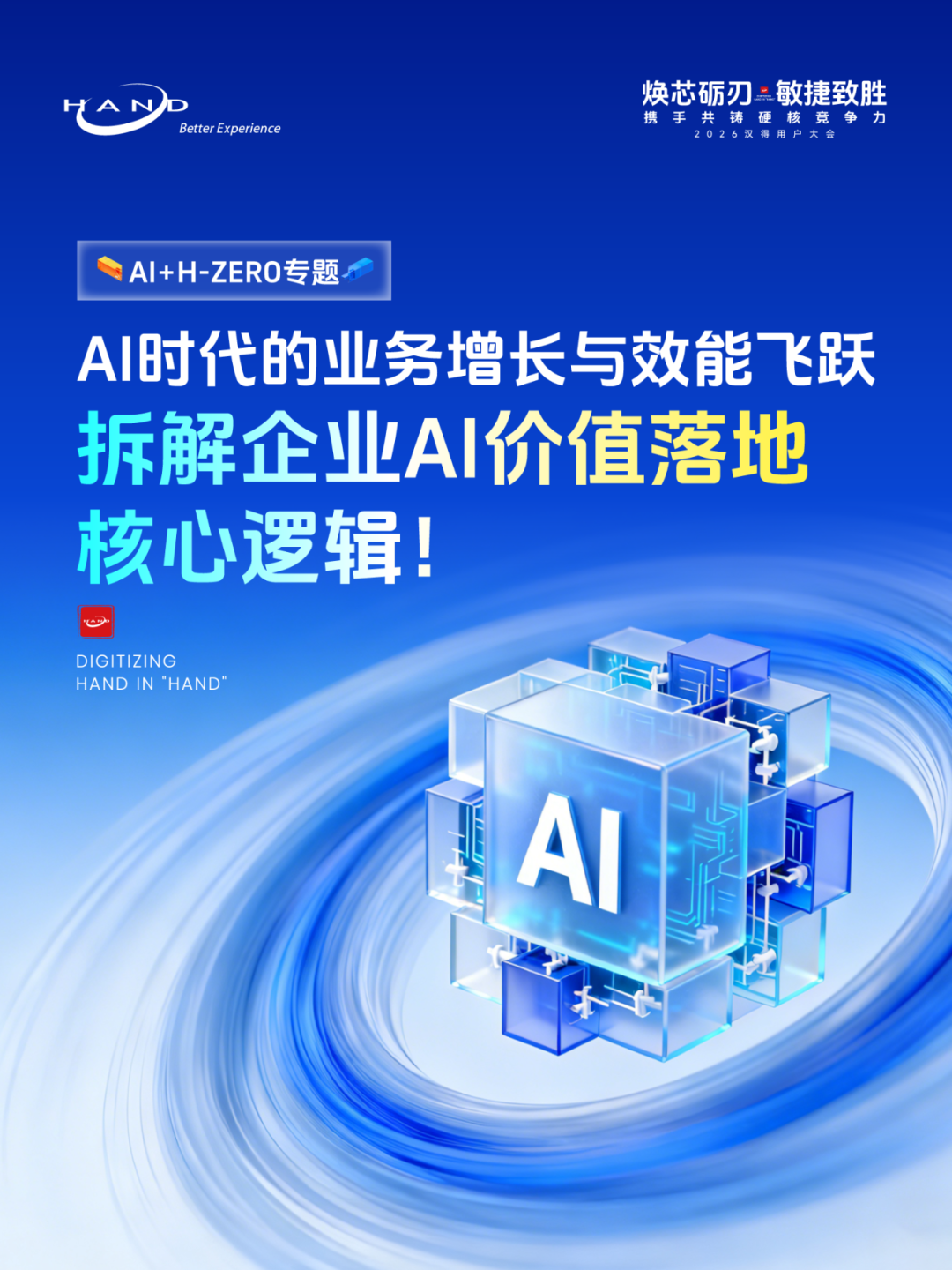 随着大模型技术的不断演进,企业级AI应用正跨越“概念验证”阶段,全面迈入实质性的“价值落地”深水区。 从行业实践来看,企业的关注点正在发生深刻转变:从最初惊艳于“AI能做什么”,转向拷问“AI能否稳定融入业务,并持续创造真金白银的价值”。如何打破系统孤岛、消除数据越权隐患、避免高投入的AI沦为无法规模化的“点状工具”? 在“2026汉得用户大会”现场,多位来自制造业与科技领域的数字化先锋,围绕真实落地路径,分享了从场景选择、组织推进到体系建设的硬核经验。我们为您深度提炼了本次大会的核心洞察与实战干货,邀您共探AI时代的数智跃迁之路。 以下内容按大会现场议程顺序展开,依次梳理各位嘉宾的核心观点与实践分享。 ○ “企业AI真正需要的,不是‘大力出奇迹’,而是在业务边界内实现更稳定、更可控、更具投入产出比的确定性。” 面对AI带来的新一轮产业变革,企业一边充满期待,一边也在经历更现实的分化与重估。在分会场开场致辞中,汉得信息CEO黄益全指出,过去一年,企业对AI的热情前所未有,但真正进入实践后,越来越多企业开始意识到:ToC端的惊艳体验,并不等于ToB端可以直接复制的落地路径。对企业而言,AI不是“用了就会立刻上天入地”,而是必须回到成本、约束、准确率和业务价值这些更现实的问题上来。 黄益全提出,相比“大力出奇迹”的个人AI逻辑,企业真正需要的,是“极致的确定性”。所谓极致的确定性,一方面是以更小代价获得更稳定结果,另一方面是围绕企业真实业务,把与场景无关的能力、信息和自由发挥尽可能收敛掉,让AI更聚焦、更可控、更贴近业务本身。企业不是追求无限算力和无限参数,而是要让AI在明确边界内,稳定解决具体问题。 围绕这一路线,黄益全进一步总结了企业AI落地的两个关键抓手:一是持续沉淀原子能力,把查库存、查订单、查可用量等确定规则、确定流程的事情,通过API、工具、程序、SaaS应用等方式固化下来,减少不必要的模型消耗;二是打通数据、构建本体,让订单、库存、单据等分散数据真正串联起来,形成围绕业务对象的充分信息,为AI判断与执行提供更强支撑。相比简单做Mapping,企业更需要的是围绕本体持续展开数据,让数据真正服务于确定性的形成。 黄益全表示,企业AI最终拼的,不只是模型能力本身,而是数据、原子能力与场景分工设计的长期积累。依托H-ZERO、H-ONE及AI中台相关能力,结合对行业场景的持续理解与沉淀,汉得正帮助企业找到属于自己的AI落地路线。只有真正把AI放进场景、放进分工、放进业务约束中,企业才能从焦虑与观望中走出来,稳步迈向属于自己的智能化新阶段。 ○ “不盲目追逐技术热潮,坚持‘先精益,后AI’,用业务价值牵引技术落地。” 作为全球精密传动领域的重要企业,深耕齿轮制造45年的双环传动,正以一条务实、稳健的AI转型路径,成为制造业智能化升级的代表案例。 分享中,双环传动系统介绍了围绕“环抱AI”战略展开的整体布局:一方面,企业搭建GPU集群,私有部署DeepSeek、Qwen等大模型,并联合汉得信息灵猿AI中台构建“1+2+3+N”技术架构;另一方面,在组织侧由高层牵头成立AI工作组,培养100名内部智能体开发者,推动AI从技术探索走向业务协同。 聚焦研、产、供、销、质等核心环节,双环已打造30多个核心智能体和100多个轻量特色智能体,并取得一系列清晰成果:质量AI助手让问题解决效率提升30%;合同评审智能体每年覆盖1.7万份合同;销售订单智能体年节约6912小时;齿轮外观缺陷识别检出率达到99.8%。 更值得关注的是,双环传动始终坚持“先精益、后AI”的理念,以“场景—价值—技术”为主线,从小切口切入、先验证ROI、再批量复制,推动AI从重复任务自动化逐步走向经营决策优化,不仅助力双环向 “全球齿轮制造第一” 的目标稳步迈进,也为制造企业AI落地提供了极具参考价值的实践样本。 ○ “企业AI建设的关键,不在于零散试点,而在于把智能体、知识、架构与治理能力沉淀为可复制的系统能力。” 当AI从技术试验走向产业主战场,企业关注的重点,正在从“能不能用”转向“如何规模化创造价值”。在分会场分享中,汉得信息AI事业部总经理何楠指出,今天企业推进AI,难点早已不只是模型和工具本身,而是如何跨越场景选择、知识准备、系统协同、组织机制与治理运营等多重门槛,把零散尝试沉淀为可复制、可持续的系统能力。汉得也观察到,未来3—5年,企业AI建设将进一步走向多智能体协同、AI工厂、物理AI与智能治理并行演进的新阶段。 基于过去一年大量项目实践,何楠提出,企业AI落地既不能停留在价值有限的局部试点,也不能一开始就追求大而全,而应优先聚焦高频发生、规则可沉淀、结果可量化的关键场景,从试点验证走向持续复制。 他特别强调,AI竞争力的关键,已经不仅是“有没有智能体”,而是谁能更快、更准地把成熟可用的智能体落进业务流程、落进组织体系,真正形成规模化落地效率。 在分享中,何楠还进一步谈到,AI时代企业真正要重构的,不只是应用层能力,更是面向智能体协同的业务架构、面向知识沉淀的数据架构、面向跨系统调度的应用架构,以及面向AI工厂持续演进的技术架构。与此同时,业务智能体交付、模算协同、知识工程、AI治理等新能力,也正在成为企业迈向AI原生组织必须补齐的关键基础。 依托